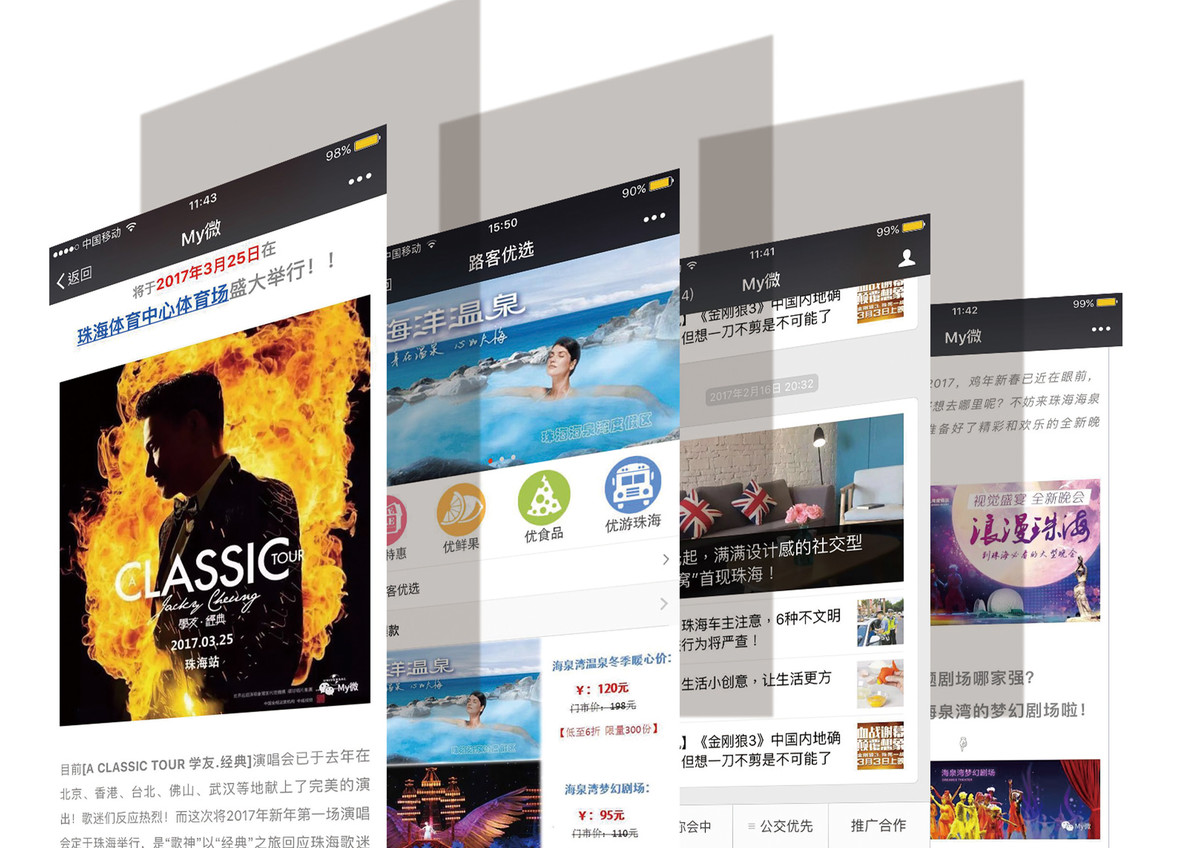 微信公众号服务——通过运营一批优质微信服务号、订阅号,如My微服务号、城客订阅号、公交商城服务号等,为商户提供更广阔的图文资讯推送平台。